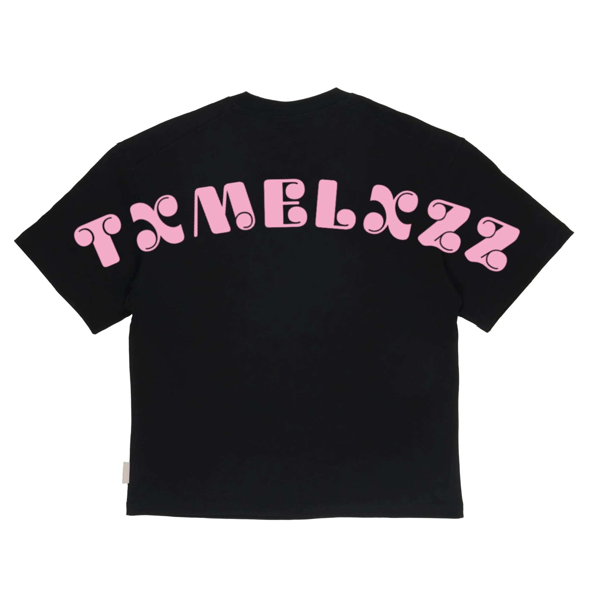 Confeccionada en color negro y gráficos en rosa pastel, esta camiseta está hecha en 100% algodón premium, ofreciendo suavidad y durabilidad. La serigrafía de alta calidad en el frente y la espalda asegura un acabado impecable que resiste el uso y las lavadas. Incorpora cuello reforzado para mayor comodidad y mantiene un toque distintivo con la etiqueta personalizada Txmelxzz.