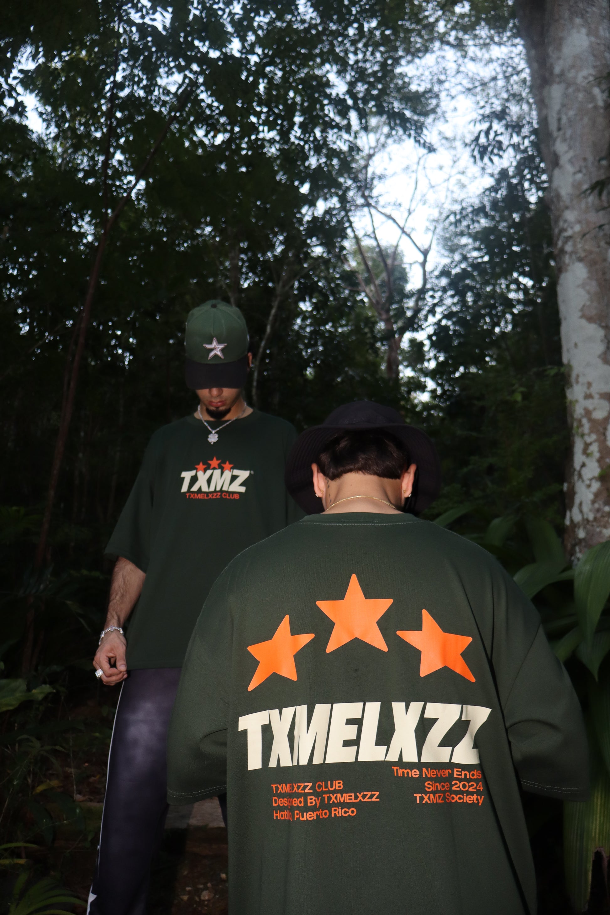 La Txmelxzz Endless Forest Tee representa el tiempo que no se detiene, inspirado en la fuerza silenciosa del bosque y en lo eterno de la naturaleza. Su tono verde profundo simboliza crecimiento, resistencia y misterio, mientras que las estrellas reflejan un camino infinito que nunca se apaga.